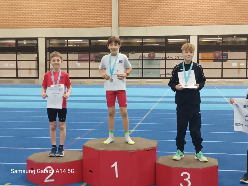 Beim einzigen Hallensportfest für die Altersklassen 10/11 in Hannover konnte Philipp Löffler schon mal die besondere Atmosphäre eines Hallenwettkampfes geniessen. Im Rennen über 800m der Ak M11 gewann er seinen Lauf souverän in 2:46,32min und hatte wohl noch "Körner" übrig. Erst im 3. Lauf (alles ungesetzte Zeiten) gelang es einem HSVer knapp vorbeizuziehen. Leider musste Philipp lange auf die Siegerehrung warten, da einer seiner 3 Läufe falsch ausgewertet wurde, was im laufenden Sportfest angeblich nicht sofort korrigiert werden konnte. Trotzdem überwog das positive Erlebnis mal auf der 200mHallenbahn gestartet zu sein.